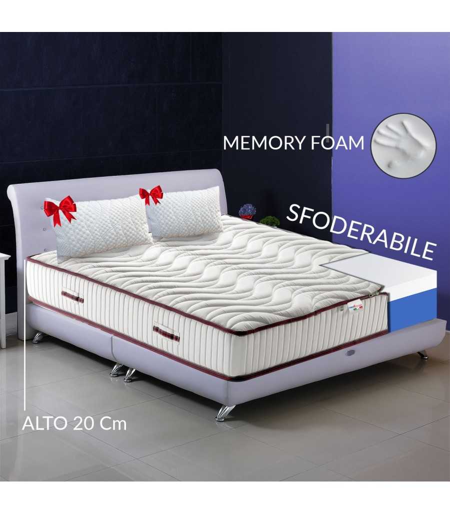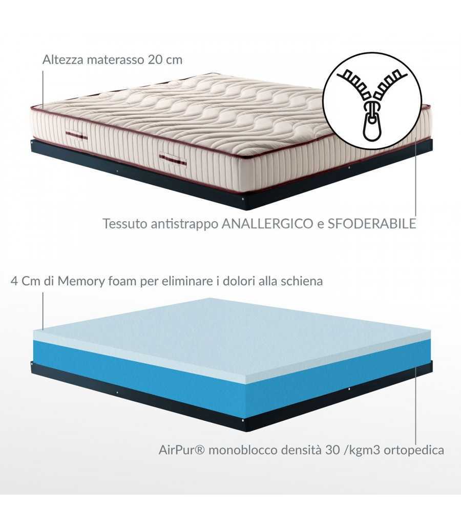 Materasso memory singolo SFODERABILE, DISPOSITIVO MEDICO alto 20 cm ortopedico in AirPur® MEMORY NATURE - CUSCINO IN PROMO