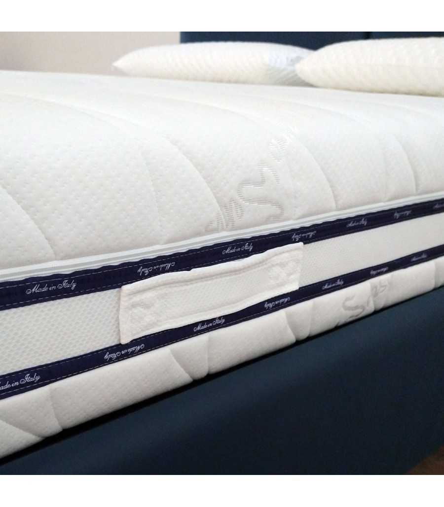 Il rivestimento termoregolatore garantisce la massima igiene, la riduzione dell’umidità oltre alla protezioni da acari, germi e batteri e stabilizza la temperatura del corpo a livello OTTIMALE. Questo tipo di materasso presenta ben 4 MANIGLIE resitenti cucite in automatico.