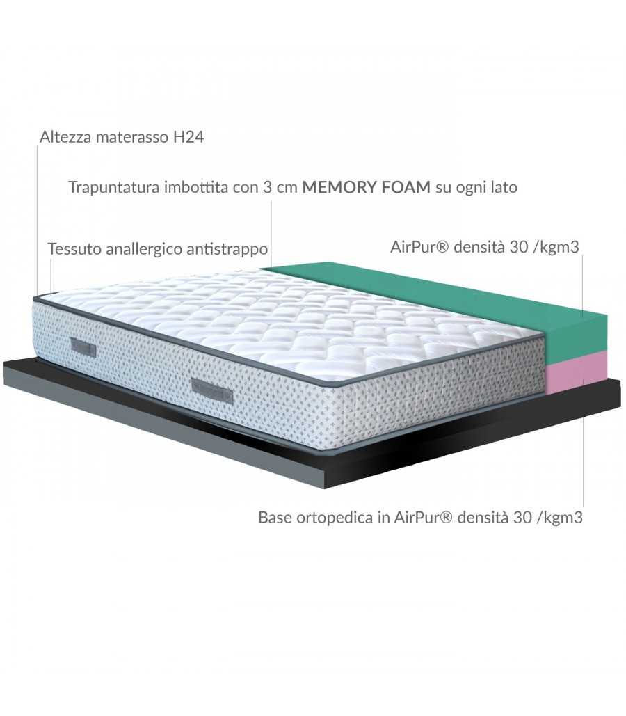 - Confort: Il materasso ha due lati con 3 cm di memory ciascuno ideali garantire una postura corretta e un sonno ottimale.